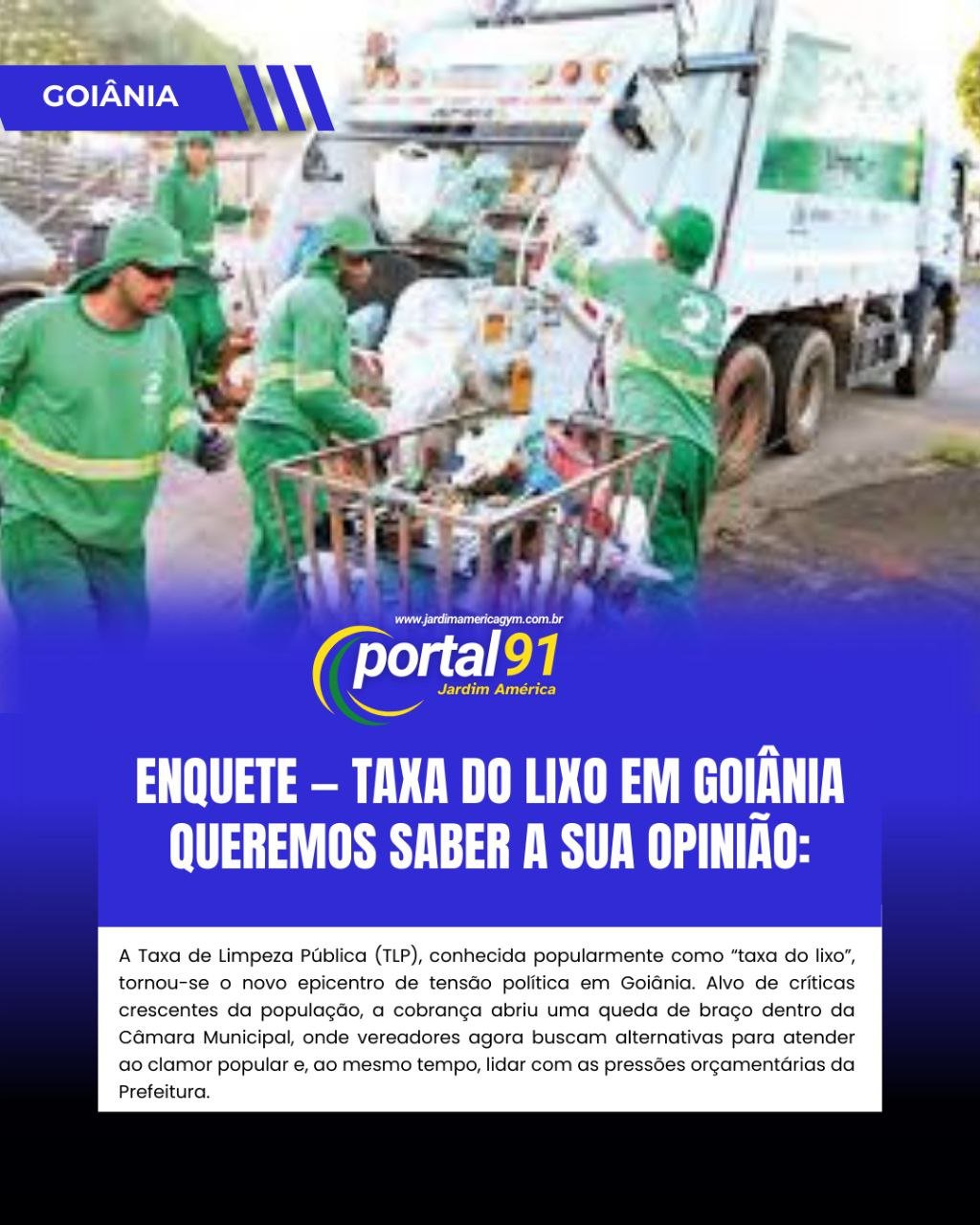 Queremos saber a sua opinião! Participe da nossa enquete e vote em quem você acredita ser o melhor nome para comandar o Governo de Goiás a partir de 2026. Sua voz faz a diferença! A Taxa de Limpeza Pública (TLP), conhecida popularmente como “taxa do lixo”, tornou-se o novo epicentro de tensão política em Goiânia. […]